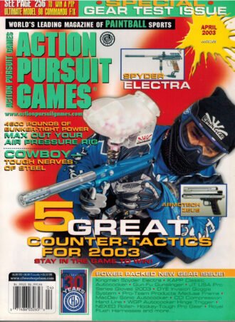 APG Action Pursuit Games Magazine SUPER SALE April 2003- 220 pages, New, Gear Issue, Tippmann Model 98 Commando F/X, Counter Tactics, Air Pressure, Spyder Electra